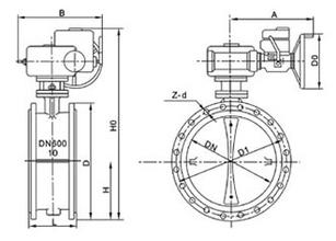 電動(dòng)法蘭軟密封蝶閥 外形尺寸