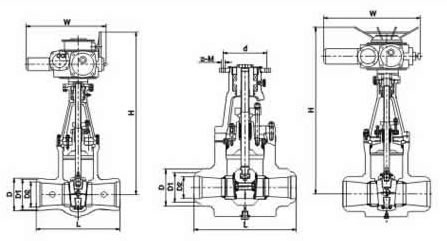 公稱通徑 | 主要外形尺寸和連接尺寸(mm) | 電動裝置 | 重量(kg) | ||||