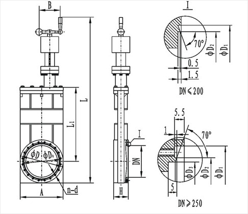 型號 | 通徑(DN) | ΦD | ΦD0 | ΦD1 | ΦD2 | ΦD3 | H | A | n-d | L | L1 | B | 法蘭標準 |