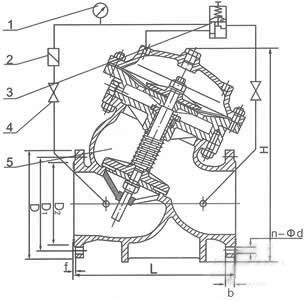 1、壓力表2、過濾器3、控制導閥4、流量調節閥5、主閥