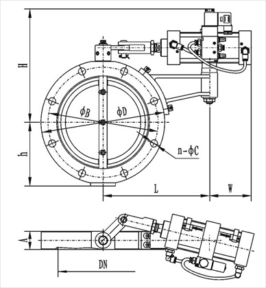 型號 | 通徑(DN) | ΦD | ΦB | H | h | A | L | W | n-ΦC |