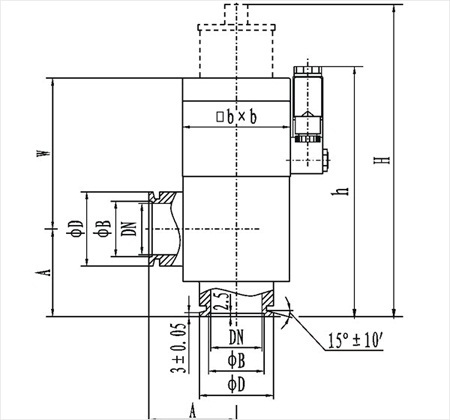 型號 | 通徑(DN) | ΦD | ΦB | W | H | h | A | bxb |